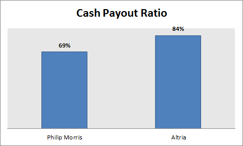 Not only is Philip Morris growing cash flow, it also pays out a lower percentage of available cash flow than its peers. Over the last four quarters, Philip Morris paid dividends equivalent to 69% of its cash from operations, compared to Altria's 84% cash payout ratio.