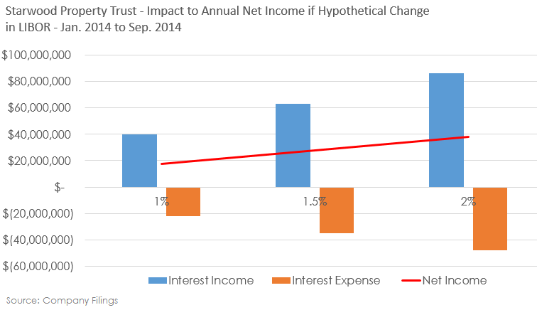 The same principles apply if short-term rates were to increase 2%, 3%, 4% and so on. The higher short-term rates go, the bigger Starwood Property's benefit.