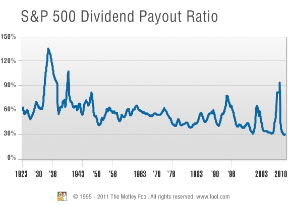 But since the mid-1990s, investors have witnessed a new norm: an average dividend payout ratio for S&P 500 companies near 30%.