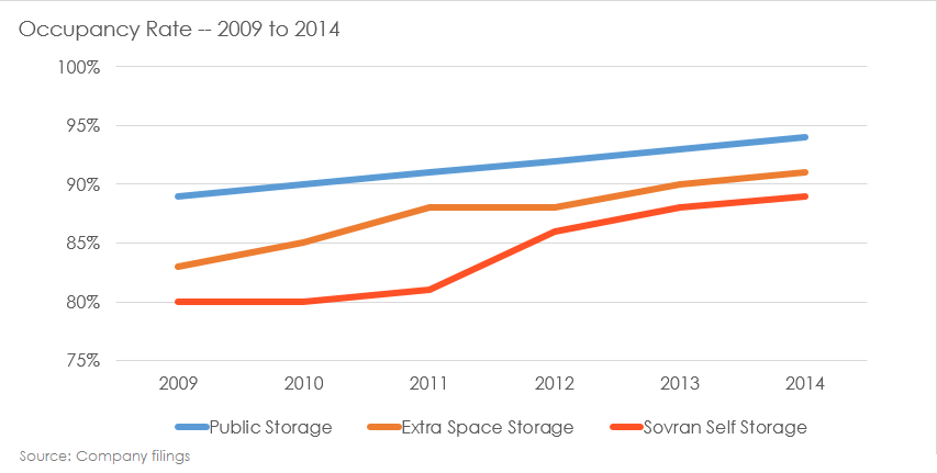 Public Storage's durability through the financial crisis, its dividend growth, and high occupancy make it a strong and stable business. On the other hand, Extra Space's willingness to ratchet down its payout ratio and follow through on rapid growth seems to give it the most upside of the three.