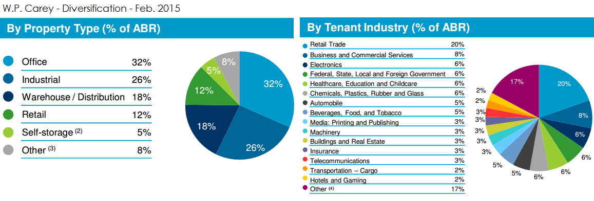 As you can see in the chart below, the company is also widely diverse by property type and by tenant industry.
