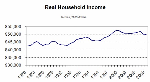 Average real household income has increased 16% since 1970. However meager and pitiful this is, the average American household's still earning more today than it did four decades ago.