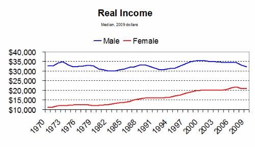 Men's average real income has actually declined since 1970. Women's, meanwhile, has jumped 90%.