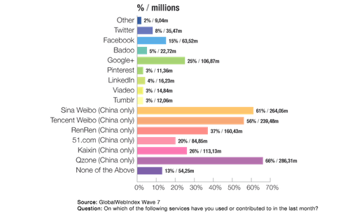 I don't doubt that some savvy Chinese users have gotten around the Great Firewall, but Global Web Index's digits do look a little lofty.