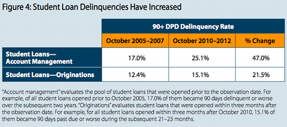 Source: FICO, "Is Growing Student Loan Debt Impacting Credit Risk?" Jan. 2013.