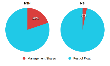 It is pretty clear that management holds a much larger stake in the general partner than the underlying MLP. It should also be noted that Kinder Morgan is structured as a C-corp, Energy Transfer Equity is itself an MLP, and NuStar GP Holdings is an LLC. Structure is a non-issue as far as respective management's holdings go (though that too can be a factor in an individual investor's decision).