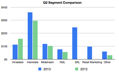 All but one segment is outperforming last year's numbers. On top of that, there are the segments that didn't exist last year: the partnership's stake in Sunoco Logistics and the retail gasoline stations and convenience stores.