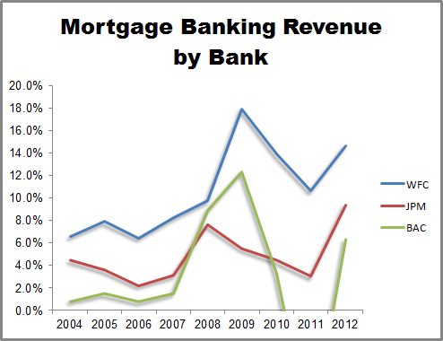 What this chart shows specifically is the percentage of each bank's revenue that came from mortgage banking.