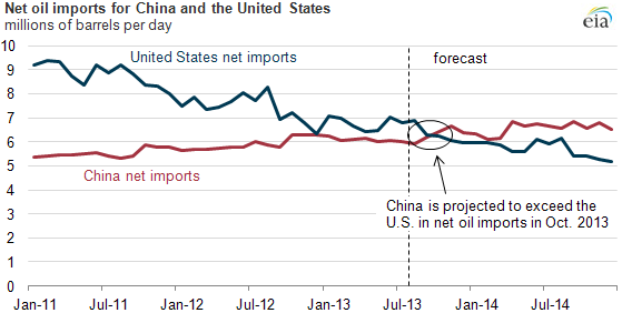 Just about every day we hear a story of how China has passed the U.S. in some metric, or how China is slowly catching up to us. For the most part, these stories look to tap a xenophobic nerve as we slowly lose our position as the sole global superpower. Yet for all of those milestones that China passes or approaches, there are a few we will happily give to them. Soon, we will be able to relinquish the crown as top net oil importer.