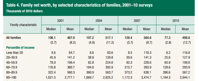 Take this table, showing changes in household net worths by income percentile over the past decade: