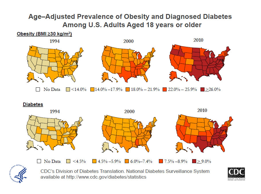 If there is one bright spot in this data, it's that childhood obesity appears to be leveling off its uptrend, suggesting that changes being made at the school level to supply more nutritious foods, and in getting kids to be more physically active, just might be paying off. For adults, however, the trend doesn't appear to be getting any better.