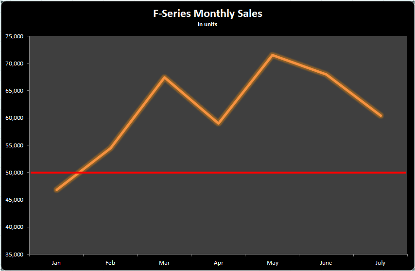 Ford relies heavily on the F-Series to bring in the majority of its profits. If making its truck more environmentally friendly, yet staying Ford tough, appeals to a broader audience, it could result in additional sales. Even if those changes aren't enough to move the needle, Ford's F-Series is already off to an excellent start this year. Ford considers more than 50,000 sales a great month; as you can see below, it's far surpassed that goal from February onward.