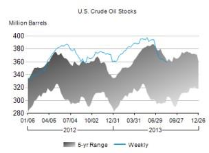 After dropping off 0.8% the previous week, this newest report marks the third straight week of crude oil contraction. This latest drop was a result of increased refinery inputs, up 234,000 thousand barrels per day (bbpd) from last week. Crude supplies of 359.1 million barrels are 0.5% below year-ago levels.