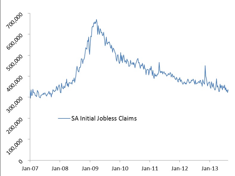 From a more long-term perspective, a 0.7% decrease in the four-week moving average to 330,500 initial claims marks the sixth straight week of declines in that number and the lowest for the average since November 2007. Both the latest week's claims and the four-week average fall significantly below 400,000, a cutoff point that economists consider a sign of an improving labor market.