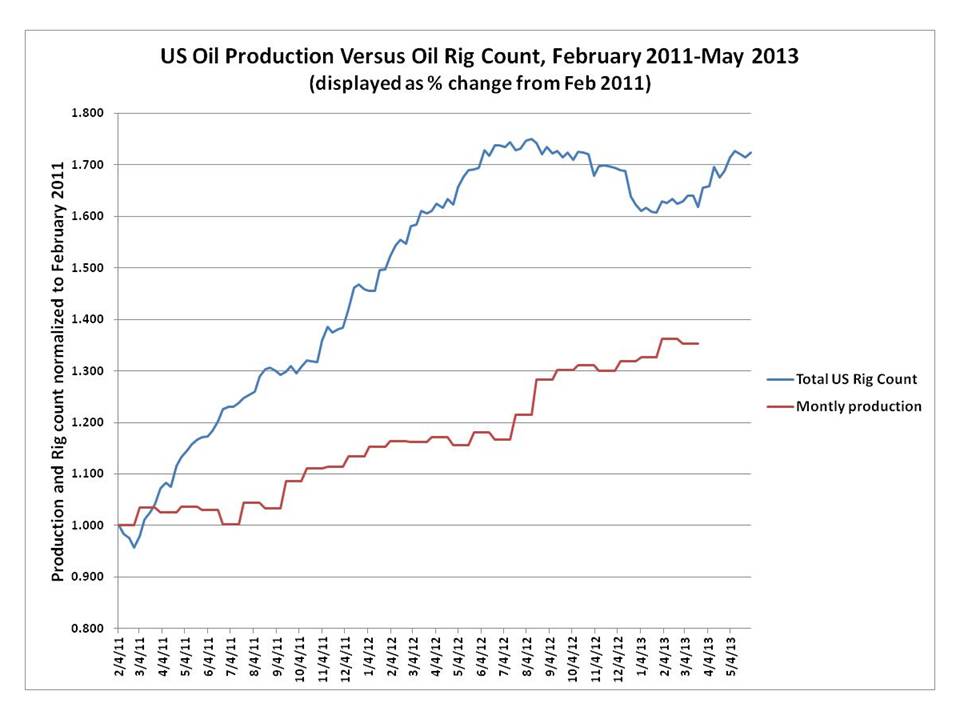 Sources: Baker Hughes rig count and U.S. Energy Information Administration; author's calculations.