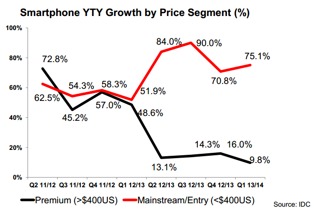 South Korea-based Samsung topped the worldwide smartphone market with 31.7% market share on shipments of 71.3 million units. The company has refocused its smartphone strategy in the developing markets, specifically in China, where consumers demand mid-to low-end smartphones because of income constraints. If Samsung wants to secure its market dominance, the company needs to carry innovation into its mid- to low-end smartphones with new form factors to differentiate from low-cost Chinese brands.
