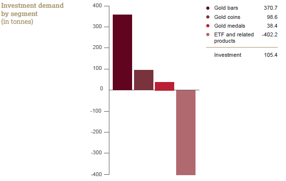 "The prospect of the U.S government tapering quantitative easing by the end of 2013 had a disproportionate downtrend impact on the gold price as some investors in ETFs saw their key rationale for seeking a safe haven in gold fade," the World Gold Council report said.