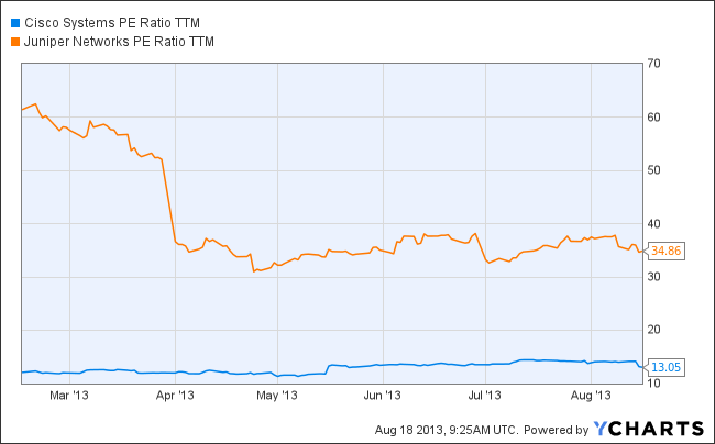 Finally, with a much higher price-to-earnings ratio than Cisco, Juniper will need to show the market it can grow fast enough to hold its market valuation. Such market pressure will be hard to deal if Cisco keeps acquiring early stars.