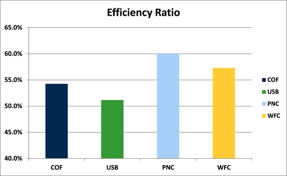 While Capital One is again bested by U.S. Bancorp in this ever-important measurement, it still maintained a ratio that topped those of its peers.