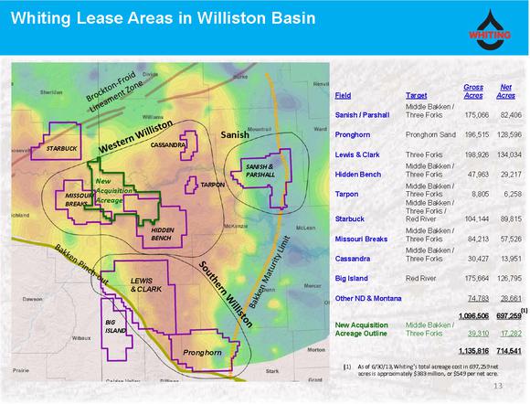 On the surface Whiting Petroleum's (WLL +0.00%) $260 million acquisition of 17,282 net acres in the Bakken looks like nothing more than a small bolt-on acquisition. However, digging a little deeper, the deal is bigger than the numbers indicate. Let's take a closer look.