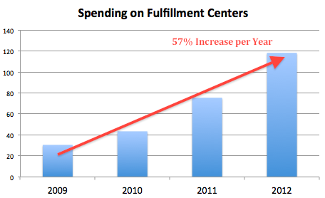 Currently, Dangdang has 20 logistics centers in 11 major Chinese cities with 4.5 million square feet of space. Just two years ago, there were centers in just five cities and only 1.9 million square feet of space. That growth helps put spending on these centers in perspective.