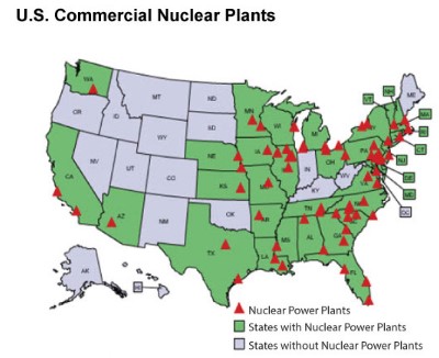 Nuclear energy has the advantage of being produced anywhere. Build a plant, ship in some uranium, and it's "lights on" for the local municipality, state, or even region. With 104 reactors spread across 31 states, nuclear provides America with 20% of its total electricity supply . Those numbers are growing, too. Southern Company (SO +0.03%) recently shattered a 30-year stagnation in 2012 when it received construction approval for two new units scheduled to come online by 2017 .