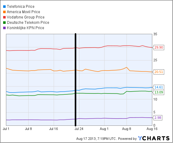 With its announcement on July 23, Telefonica proposed combining its German O2 unit with KPN's E-Plus unit, creating the largest carrier in Germany with about 38% of market share. This move clearly trumps Vodafone's June purchase. So why aren't these stocks moving?