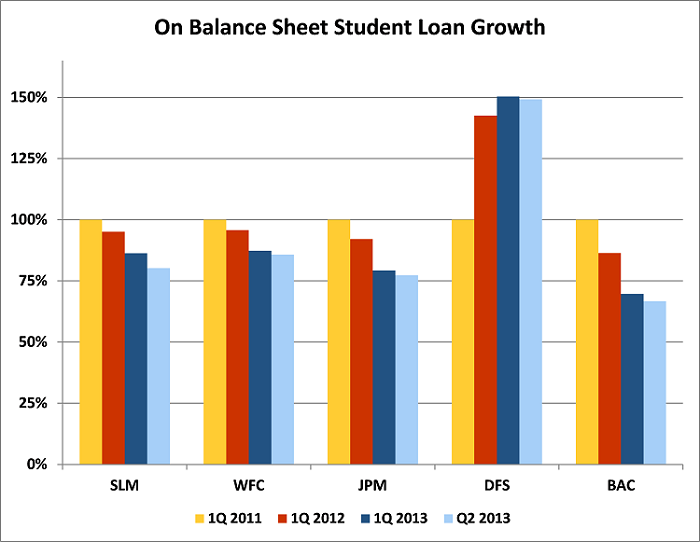 Through its acquisitions of the Student Loan Corporation and Citi's private student loans, Discover has seen its student loan portfolio triple since 2010, and grow by more than 50% since 2011, clearly planting its flag in an industry many banks have shied away from.
