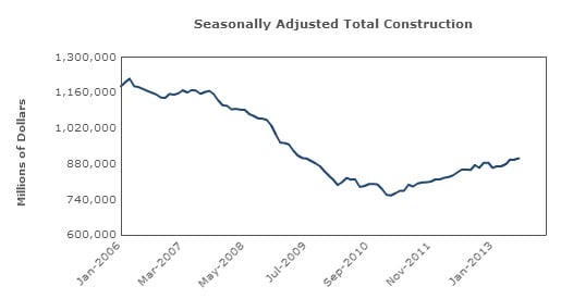 So far for 2013, overall construction spending is up 5.6% compared to the same period in 2012.