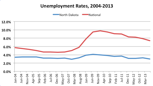 Though North Dakota has historically had lower unemployment rates than the rest of the country, it barely felt a hiccup with the onset of the Great Recession. Not only have the number of jobs increased steadily in the region over the past decade, but the average take-home pay has increased at a healthy clip as well.