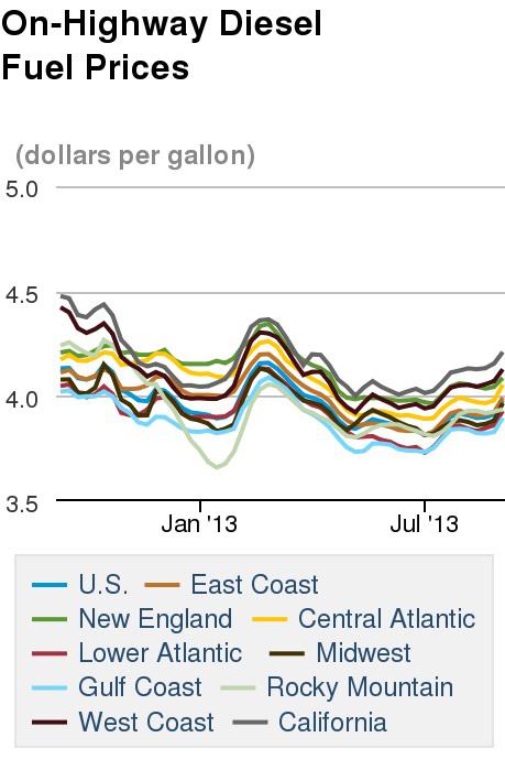 For the same period, average retail diesel prices increased even more. Diesel prices for Sept. 2 averaged $3.981 per gallon, $0.068 above last week's prices. Here, too, Midwest prices made the biggest gains ($0.083), while Rocky Mountain residents paid just $0.01 more per gallon.
