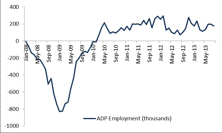 It is steady as she goes in the job market. Job gains in August were consistent with increases experienced over the past two-plus years. There's little evidence that fiscal austerity and Health-Care Reform have had a significant impact on the job market.