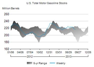 Gasoline inventories also dropped 1.8 million barrels (0.8%) for the fourth straight week of supply draws. Demand for motor gasoline is down a seasonally adjusted 0.3% for the last four weeks, and supplies are in the upper half of the average range. Despite weaker demand, retail gasoline pump prices increased by $0.06 per gallon over the last week.