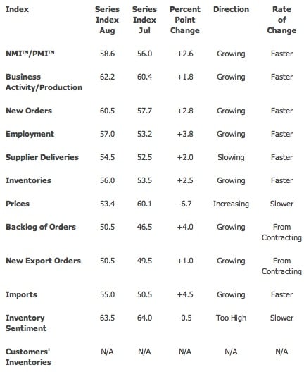The last key report of the day is the ISM Non-Manufacturing Index. The index rose by 2.6 points in August, indicating that activity in the services sector expanded at a faster rate than in July. Particularly positive for the economy was a 3.8-point jump in the employment index, indicating that more businesses are expanding hiring and at a faster rate than in July.