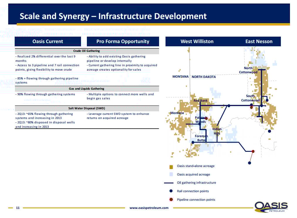As the following slide details, the acquired acreage really does fit like a glove in terms of both extending Oasis' core position and in relation to its already developed infrastructure: