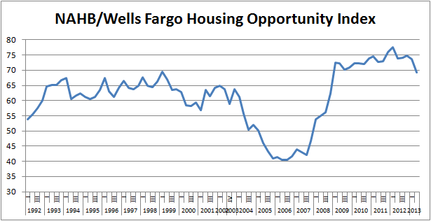 Firstly, while rising rates will affect housing affordability, according to historical data, buying a house via a mortgage is still affordable. For example, here is the NAHB and Wells Fargo (WFC +0.86%) housing-opportunity index.