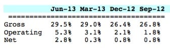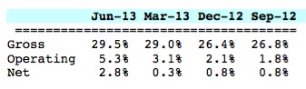 DVD cash gross margin in Q2 was 51% and the operating margin was 49%. The DVD business remains extremely profitable but subscriber numbers decrease every quarter and revenue was only 22% of total revenue.
