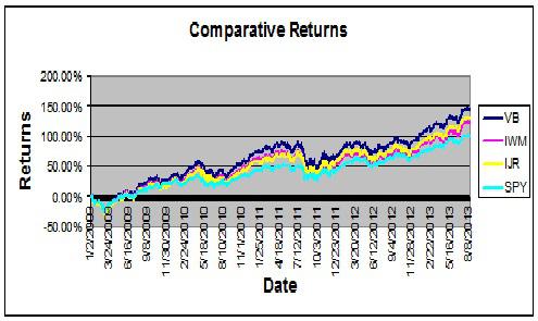 The ETFs representing the small-cap stocks are iShares Russell 2000 ETF (IWM 2.81%), Vanguard Small Cap ETF (VB. 2.20%) and iShares Core S&P Small Cap ETF (IJR 2.13%). The large-cap universe is represented by the SPDR S&P 500 ETF (SPY 1.73%).