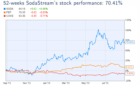 Since then, the company's market cap has risen to $1.3 billion, and SodaStream has consolidated its position as a world leader in home carbonation, present in 45 countries and 60,000 stores (15,000 in the US alone), 7 million active households, and a revenue projection for 2013 of $565 million.