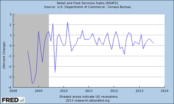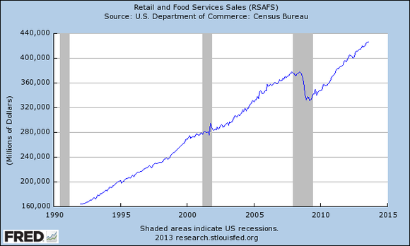 Unless we start to really see several months of poor reports, the bigger picture is that retail sales have been growing at a pretty healthy clip, despite the fact that it's not making up the lost ground from the financial crisis as fast as we might like: