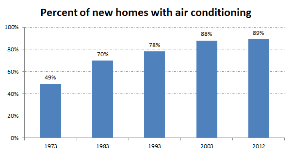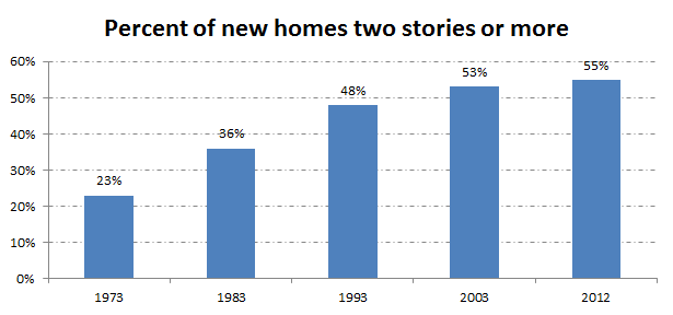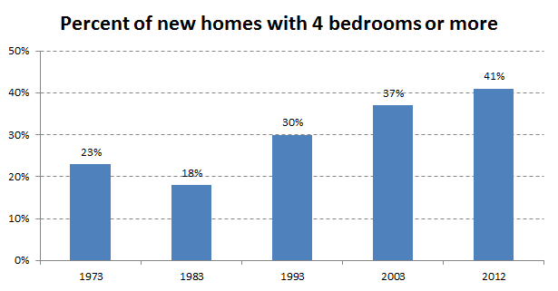 This shouldn't be surprising. In terms of real GDP per capita, the country is 84% richer today than it was in 1973. And homes have been the single biggest show of American wealth for centuries. People get richer and they want a bigger house. It's been like this for centuries, and it won't likely end.