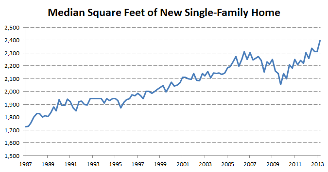 But something interesting happened. McMansions bounced back with a vengeance. The median square footage of a new home is now at an all-time high: