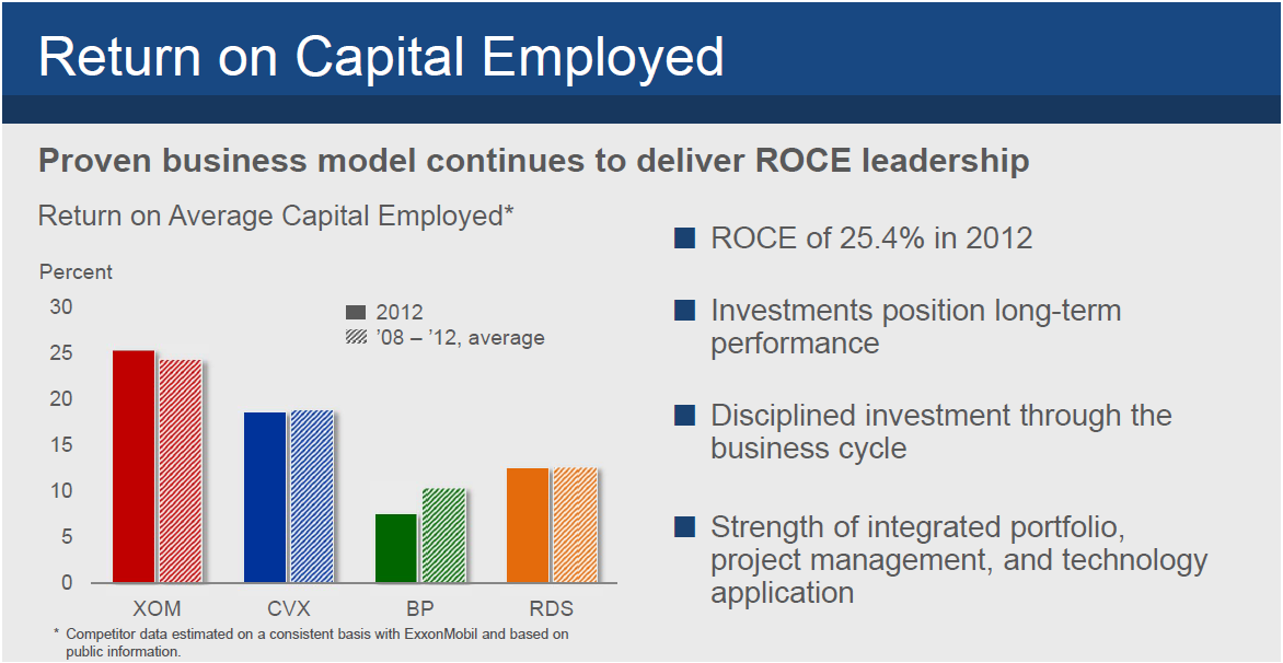 The biggest reason we have seen a major slump in return is because of the $41 billion it spent on the XTO deal back in 2010. XTO was a very natural gas heavy company, and it has caused a major production shift for Exxon in the US.