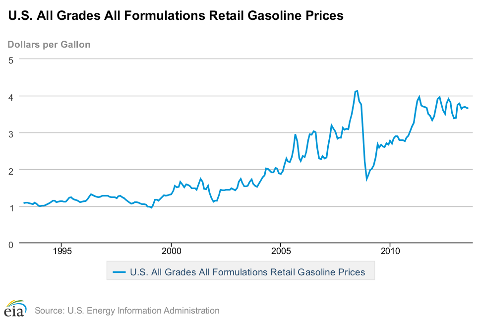 Do you remember the good ole' days? In 1998, gas in my hometown was a whopping $0.98 per gallon. For a kid in high school, that was huge—I was able to afford to go places. Gas had hovered around $1.00 for years, and many of us probably assumed it would stay that way.
