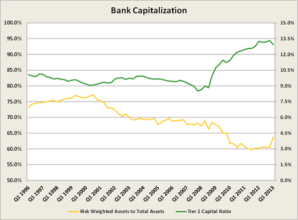 Bank of America and Citi have higher Tier 1 ratios than their more highly regarded peers JPMorgan and Wells Fargo . But B of A and Citi's ratios have fallen since last year, while JPMorgan and Wells Fargo's have risen. It's clear the banks are better capitalized than they once were; however, their trend of lower ratios certainly bears watching.