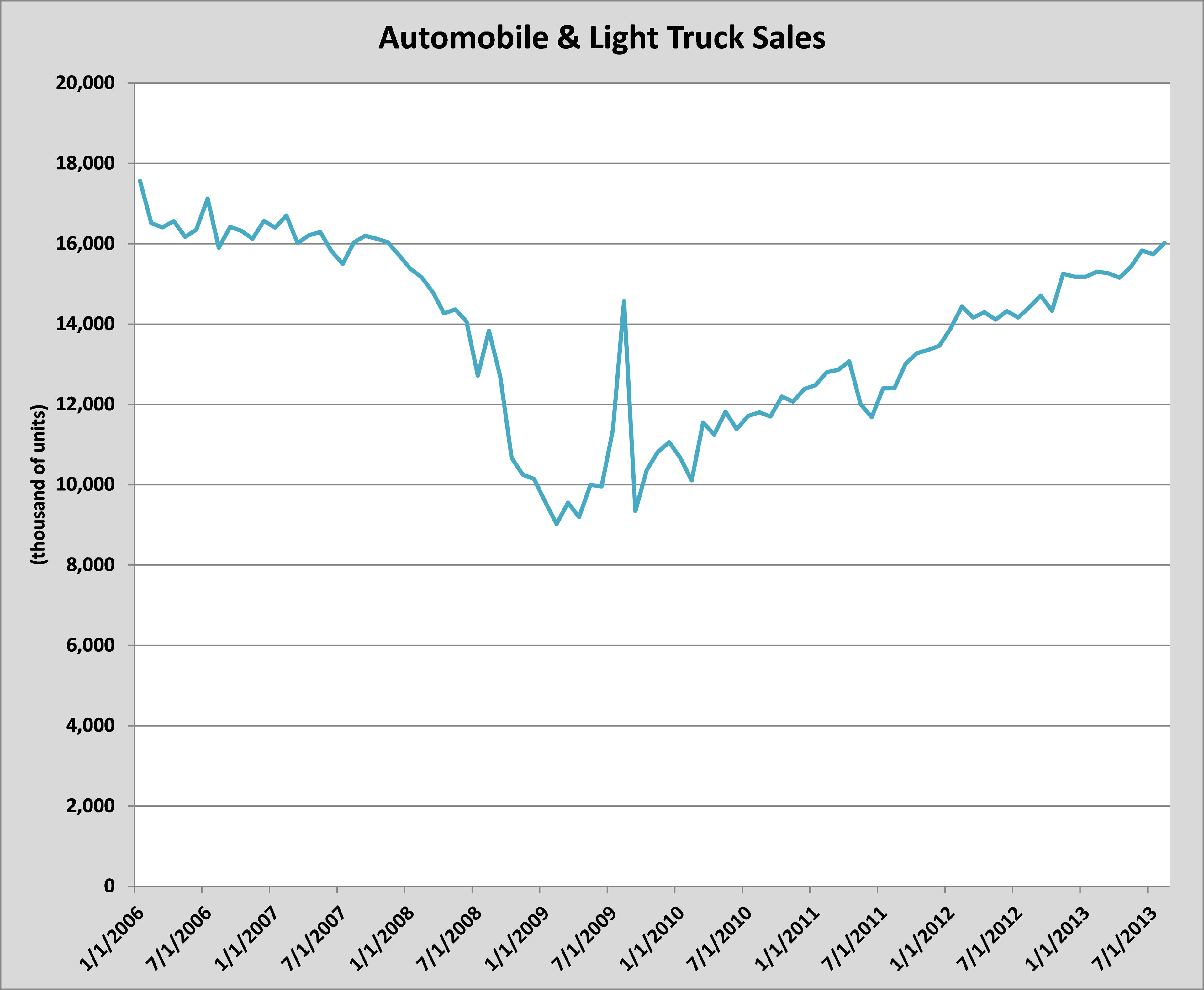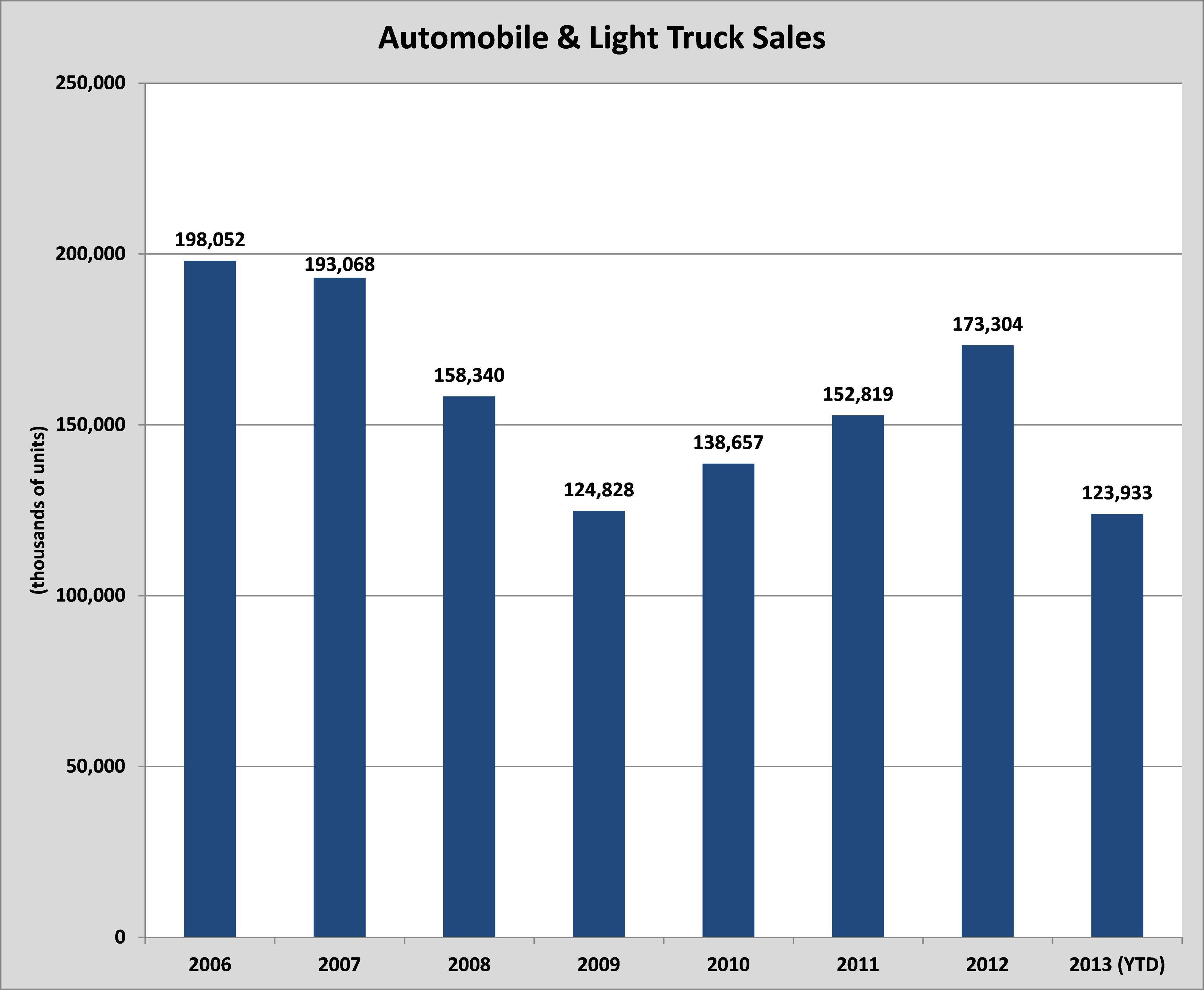 To really put that into perspective, we've seen almost as many car sales through the first eight months of 2013 as we did in all of 2009, which even included the huge spike as a result of the Car Allowance Rebate System -- or, as you probably knew it, "cash for clunkers":