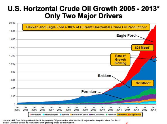 At this rate, we would produce more light, sweet oil than US refiners can handle. Also, since the US cannot legally export crude oil with some minor exceptions regarding crude originating from Alaska and oil destined for Canada, then any production that is greater than refinery capacity would essentially have no place to go. Based on the report from Deutsche Bank, this effect could result in the the spread between domestic and foreign prices growing and US crude prices dropping to $75-$80 a barrel.