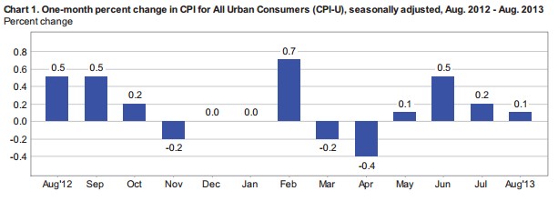 The Consumer Price Index increased a seasonally adjusted 0.1% for August, according to a Labor Department report (link opens as PDF) released today.