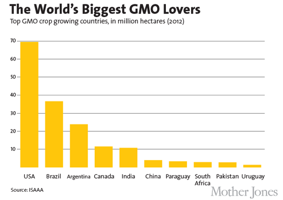 On the global scale, no country uses more land to produce GMO crops than the United States.