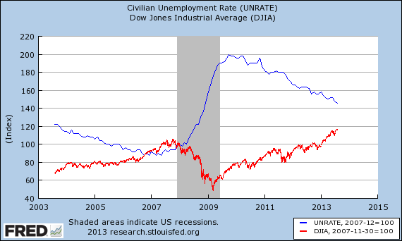 So it's fair to say there's plenty of work to be done. While 7% is better than 10%, it's hardly an ideal situation. Lower numbers are almost always better for the markets, as the jobless rate tends to mirror the Dow (^DJI 1.18%) in an almost eerie fashion.